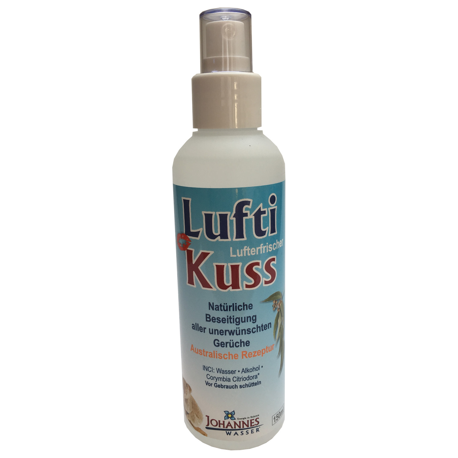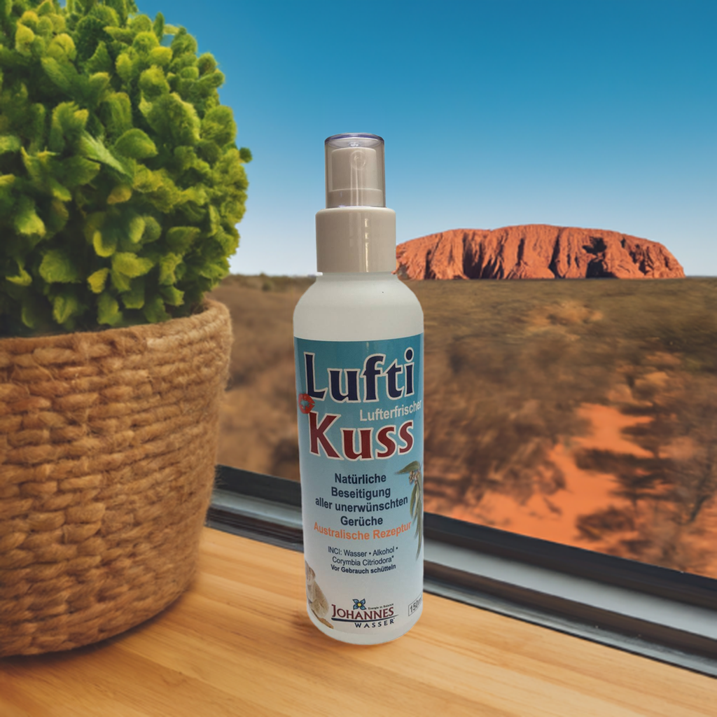 Raumduft Lufterfrischer: Luftikuss Spray von Johannes Wasser ist ein duftiger Lufterfrischer und natürliches Mückenschutzmittel. Der natürliche Raumduft wandelt durch hochwertigste Bausteine der Natur alle unangenehmen Gerüche in kürzester Zeit um. Die wirkungsvolle Rezeptur aus Australien mit natürlichen Ölen des Zitroneneukalyptus zur Bekämpfung von schlechten Gerüchen. Der intensive Duft des Zitronenöl verleiht der Umgebung herrliche Frische, die nicht aufdringlich wirkt.
