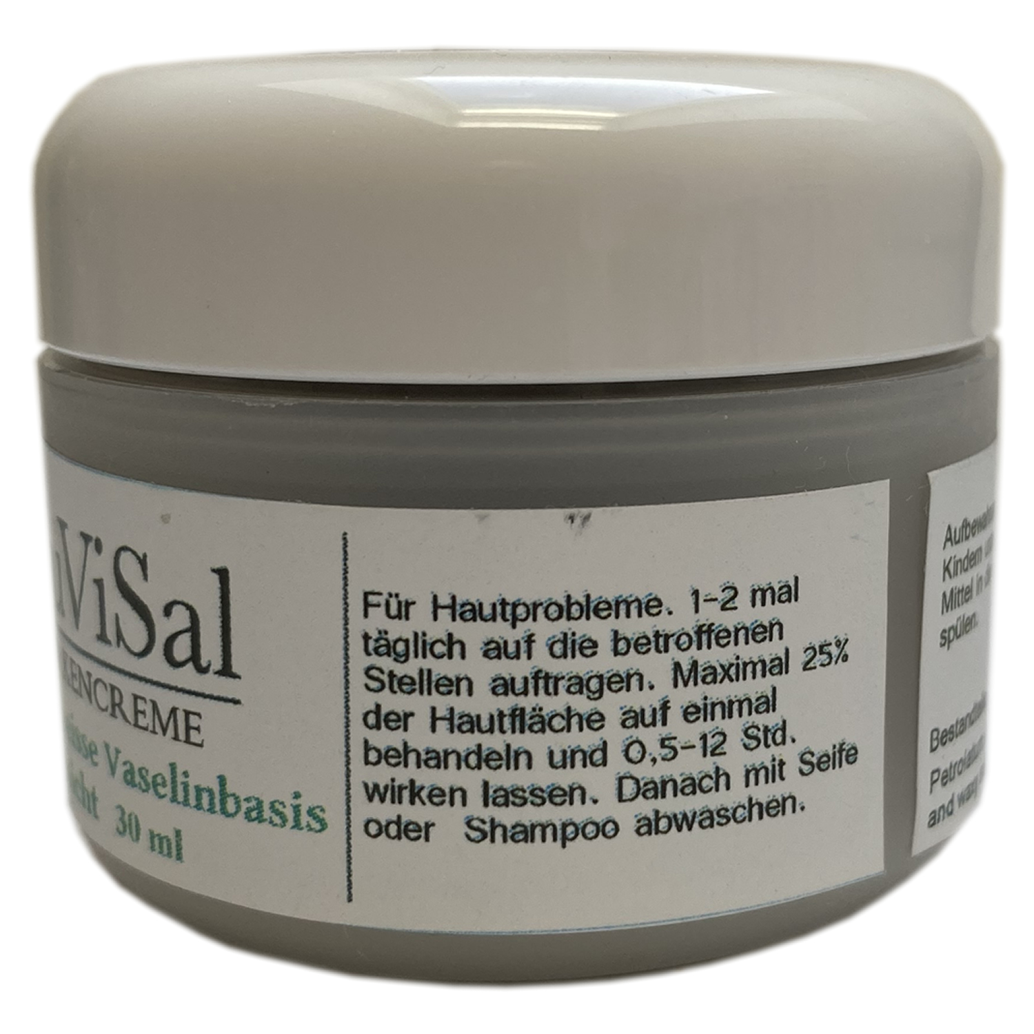 Die verwendete weiße Vaseline (Vaselinum album) in der Teersalbe Birkenteer Creme bildet die haltbare Salbengrundlage und ist ein wirksamer Feuchtigkeitsspender. Die fettenden und wasserabweisenden Eigenschaften der Vaseline dienen zum Hautschutz und unterstützten die Behandlung der Problemhaut.